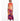 Long crepe dress, sleeveless, with a round neck and a teardrop-shaped opening with a tropical print designed by Monsieur Christian Lacroix.