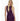 Midi dress with a round neck, sleeveless, and asymmetrical front draping with oriental floral print in purple tones.