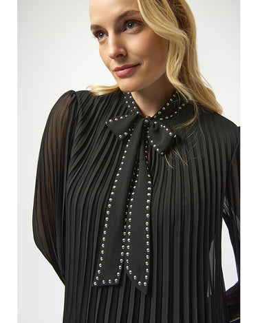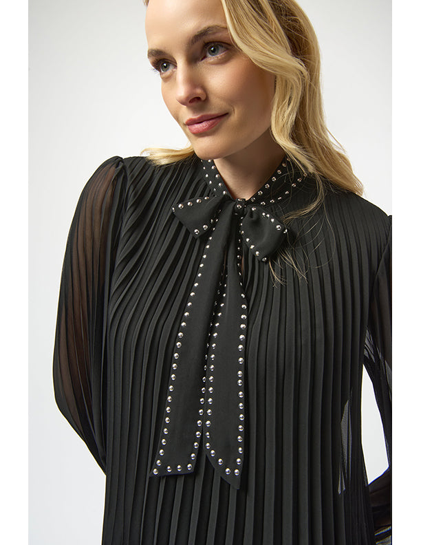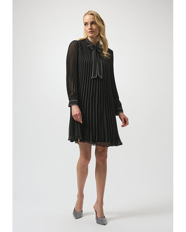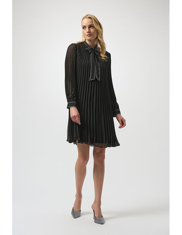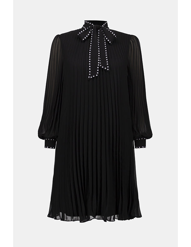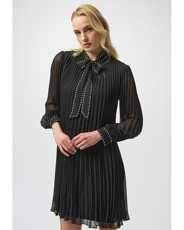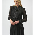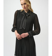 Joseph Ribkoff Pleated Chiffon Aline Dress with Neck Tie
