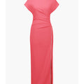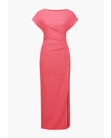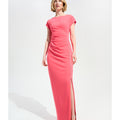 Designed to make an entrance, this sheath gown showcases radiating waist pleats and a Rhinestones-trimmed front slit. The scooped boat neckline and cap sleeves strike the perfect balance of structure and elegance. Part of the Signature collection.