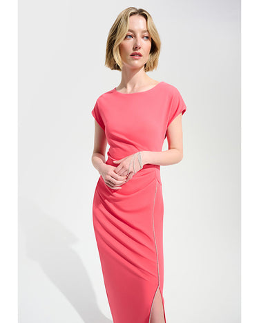 Joseph Ribkoff Signature | Scuba Crepe Sheath Gown With Rhinestones Piping
