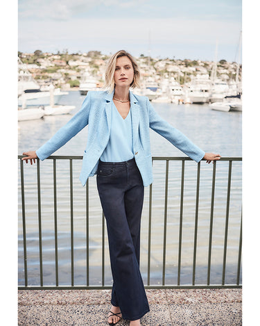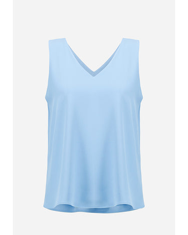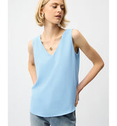 Clean and versatile, this woven twill top features a sharp V-necklineline and sleeveless cut. The streamlined straight silhouette is fully lined for a polished, easy-to-style finish.