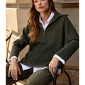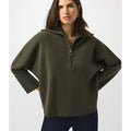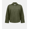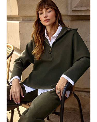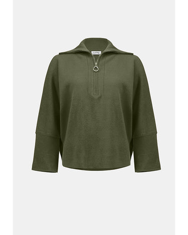 Embrace casual elegance at its finest with this must-have pullover. Made from a soft sweater knit, it features a chic zipped front, three-quarter bell sleeves, and a relaxed silhouette perfect for carefree days at home or on the go.
