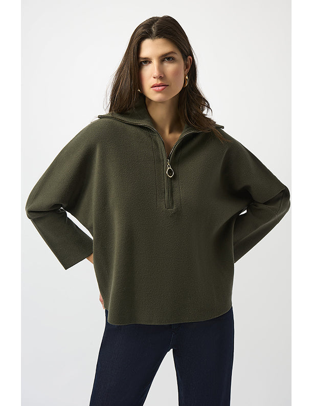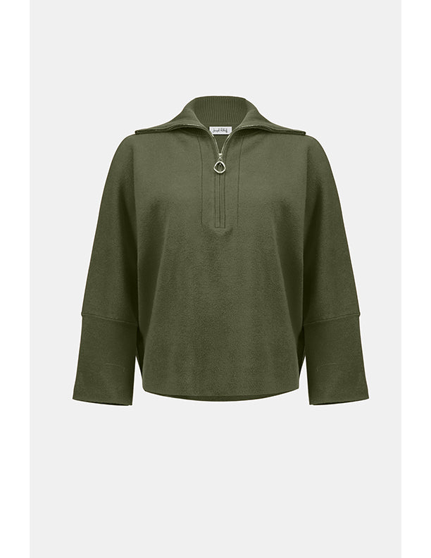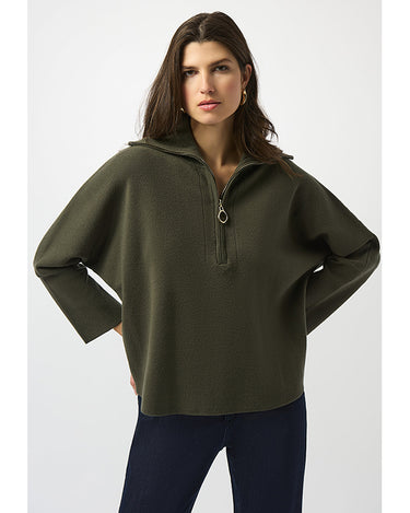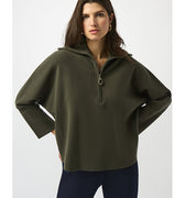 Joseph Ribkoff Sweater Knit Boxy Pullover With Zipped Collar