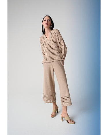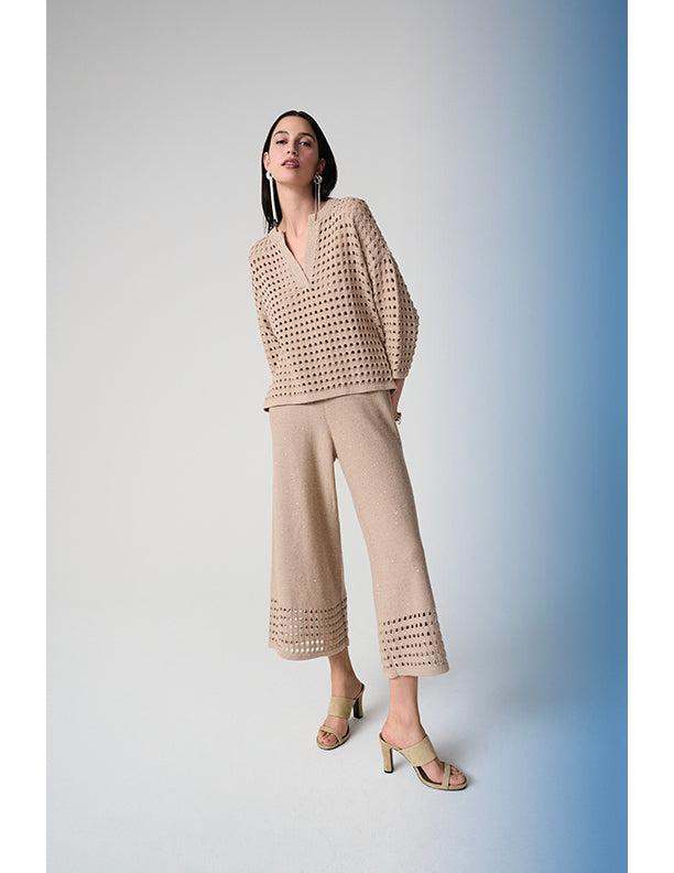 Joseph Ribkoff Sequins Yarn Culotte Pants With Open Stitch Border