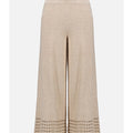 These cotton blend sequins yarn culotte pants feature a reverse jersey stitch with an open stitch border at the hem. The inserted elastic waistband ensures comfort while adding a touch of texture to this unlined, casual piece.