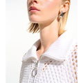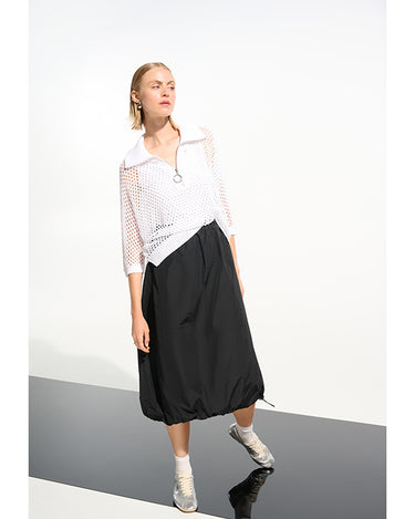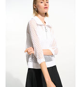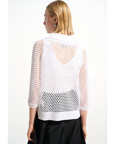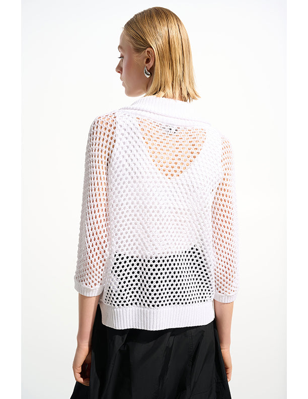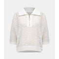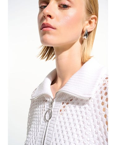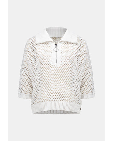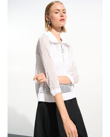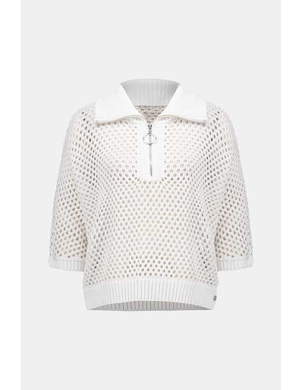 Leisurewear gets a modern lift in this open stitch sweater. Designed in a boxy silhouette with a zip-up ribbed neckline and relaxed dolman sleeves for an easy, effortless vibe.