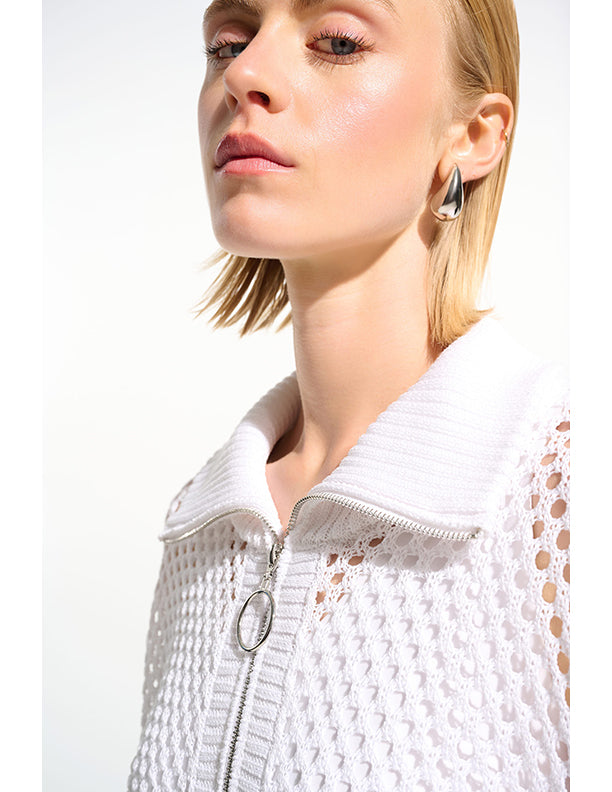 Joseph Ribkoff Vicscose Blend Boxy Sweater Knit With Zipped Neckline