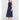 Cut in blue-violet textured organza, this cocktail dress features a sheer yoke, asymmetric pleating through the bodice, and a twisted peplum detail that adds playful structure. Finished with a V-back and midi hem—it moves like a dream and photographs even better.