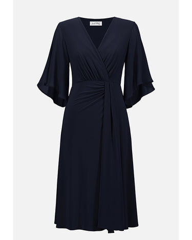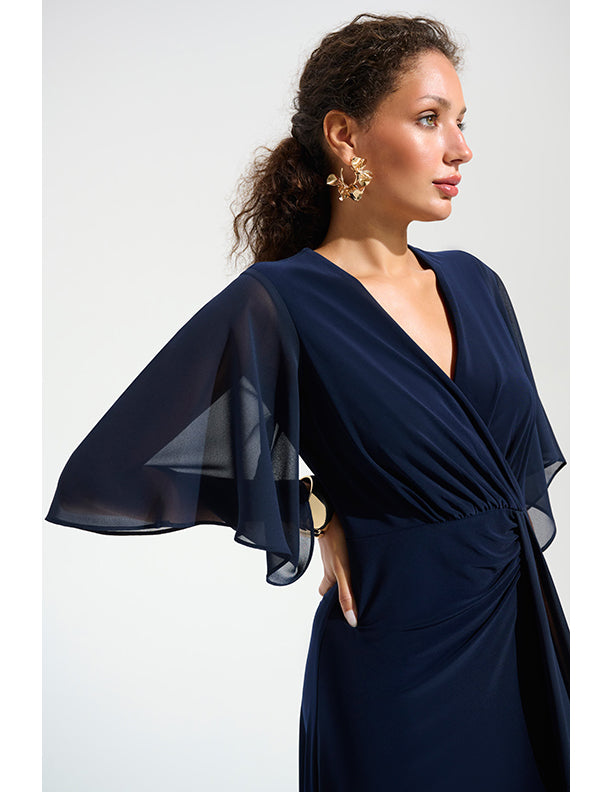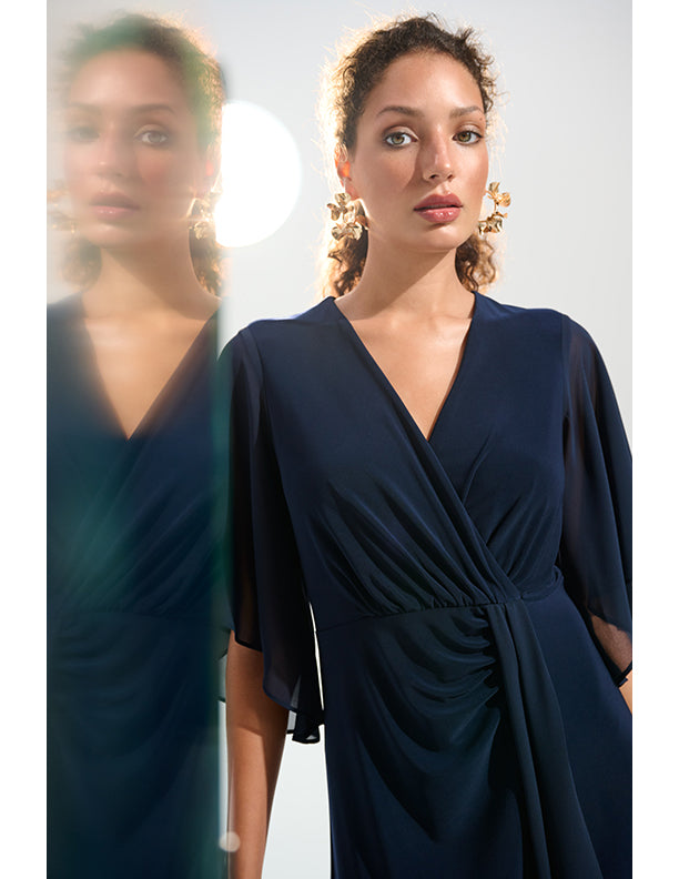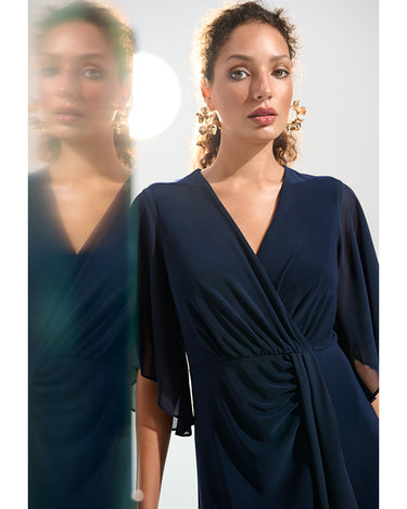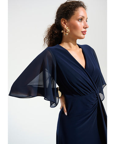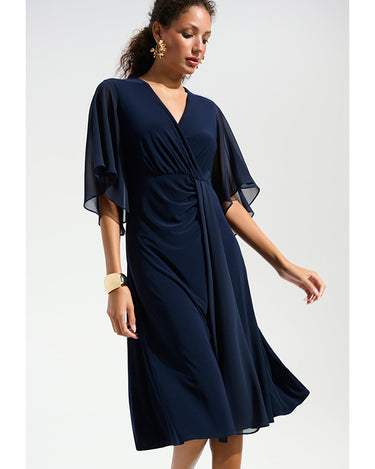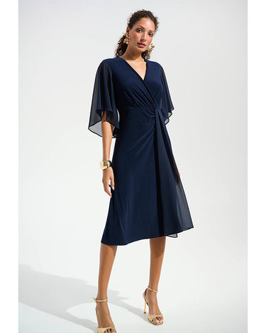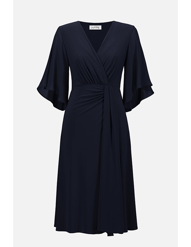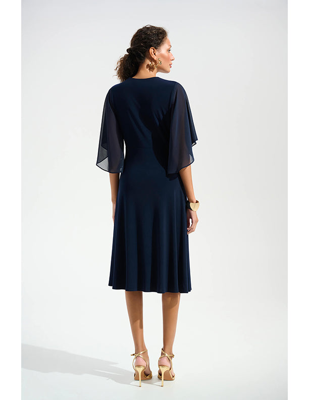 Joseph Ribkoff Signature | Silky Knit Fit and Flare Dress With Chiffon Draped Sash