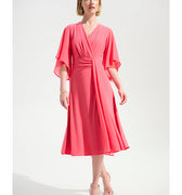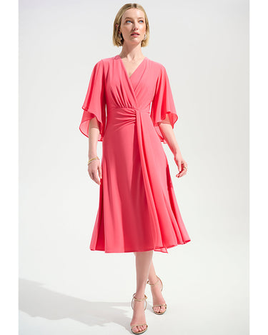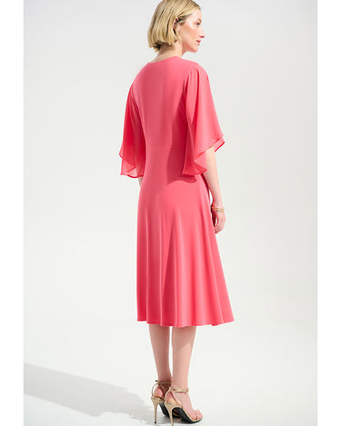 Joseph Ribkoff Signature | Silky Knit Fit and Flare Dress With Chiffon Draped Sash